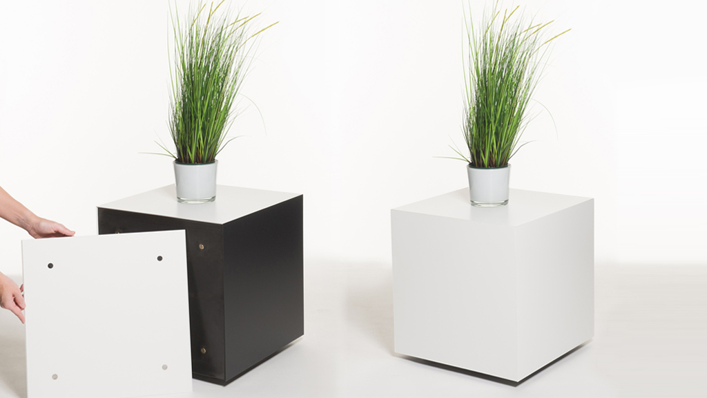 Welches Unternehmen kennt das nicht: Extra für den Messeauftritt Möbel anschaffen und sich nach dem Messeeinsatz fragen, wo das Mobilar bis nur nächsten Nutzung gelagert werden kann. Mit dem Cubus Cultus Würfel muss das nicht sein! Stehtisch oder Podest vom Messeeinsatz können Sie nämlich auch in einen Sitzwürfel, Bistrotisch oder Pflanzenpodest verwandeln. Das Messemotiv der Verkleidung passt dabei optisch nicht mehr so ganz? Kein Problem, die Würfelverkleidungen sind ganz easy austauschbar. Und einzeln nachbestellbar.